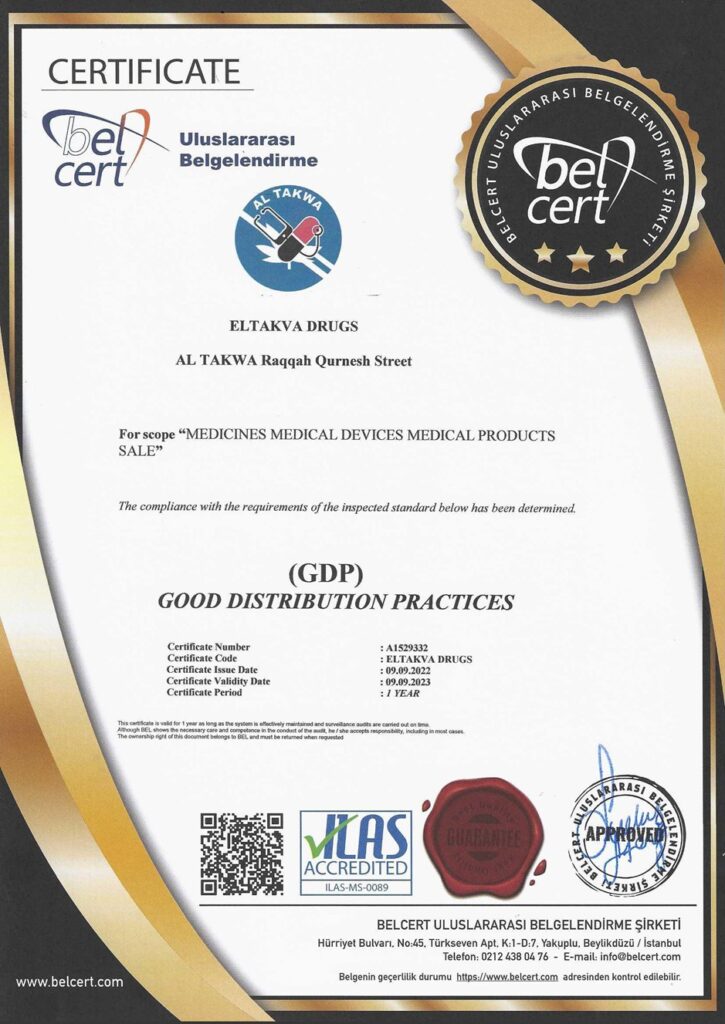 Al-Takwa Company was granted the Good Distribution Practice Certificate from BILCERT Company.